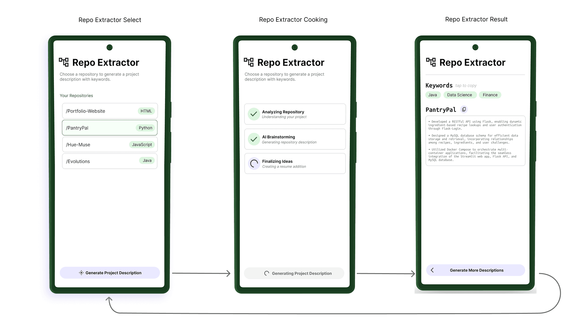 Writing project descriptions for your resume is hard. Repo Extractor connects to your GitHub (public repos for now), lets you pick a project, and uses GPT-4.1 to write a resume-ready description. It even saves your extractions so you can copy them later. We used the GitHub API and OpenAI API for this, and everything is stored locally with Room so you can access it, even when offline.