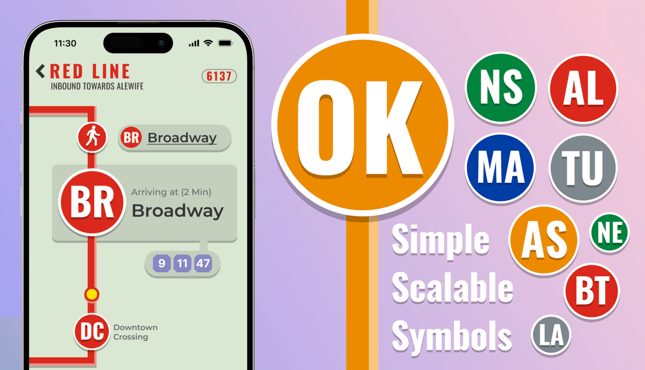 Every icon in the MBTA app leverages high-contrast colors and bold geometric shapes to ensure clarity at a glance with visibility from dim subway tunnels to sunlit streets. Icons are paired with text labels by default, supporting screen readers and language learners. These two layers communicate critical information both visually and verbally, ensuring accessibility for users with diverse needs. The result is a universal visual language that simplifies navigation while honoring the MBTA's iconic identity.